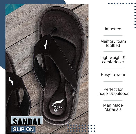 NORTY Men's Everyday Comfort Casual Sandals Flip Flop Slip On Beach, Pool