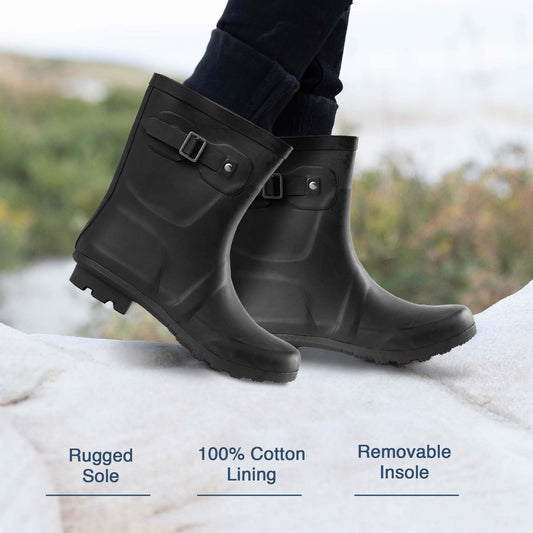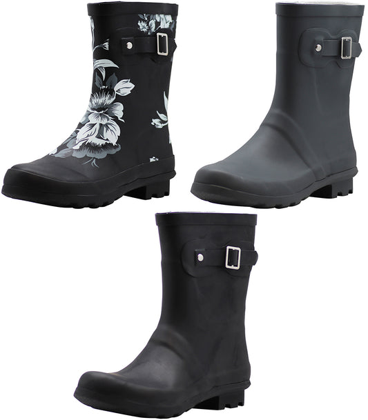 New Norty Women 9 Inch Rain Boots Rubber Snow Rainboot Shoe Bootie - Runs 1/2 Size Big