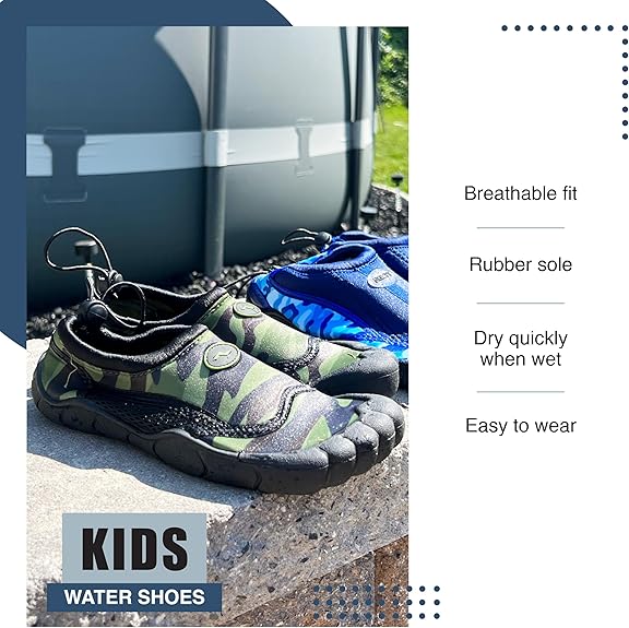 - ADJUSTABLE CLOSURE AND ANKLE PULL TAB: Shoes slip on and off quickly and easily - even when wet. Styles include the adjustable drawstring cord to cinch them tight or the strong fabric closure style - either way they won't fly off your kid's feet and get lost underwater.