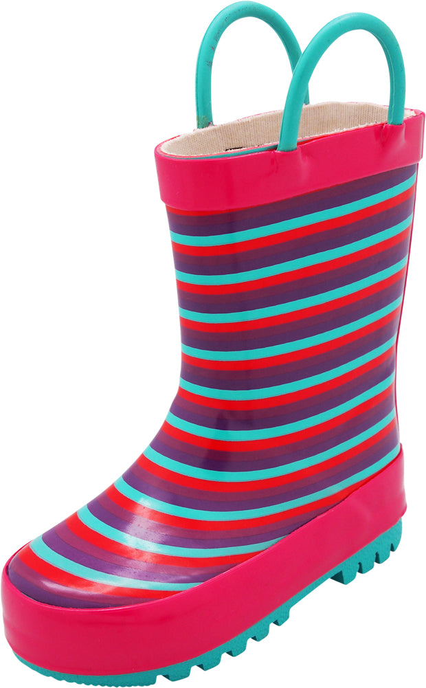 Kids look forward to rainy days when they can wear these rainboots with the big, easy-to-grab rubber handles. They're so easy for small hands to pull on by themselves and they come in 12 exciting color combinations and patterns- something to please every girl and boy from toddlers and little kids to big kids.