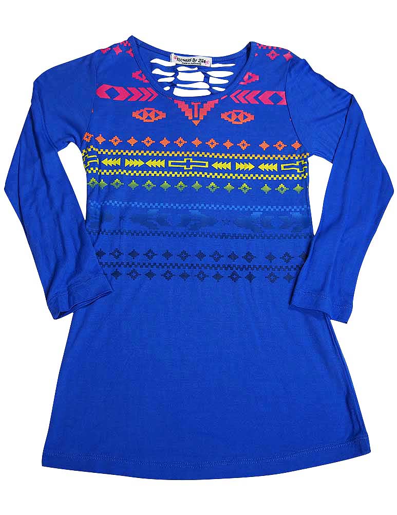Flowers by Zoe - Girls Long Sleeve Dress, Scoop Neck, tribal theme or bows just to name a few prints, Necklines of scoop neck and crewnecks as well as cold shoulder, 85% Rayon 15% Spandex, Made in Indonesia, #35790