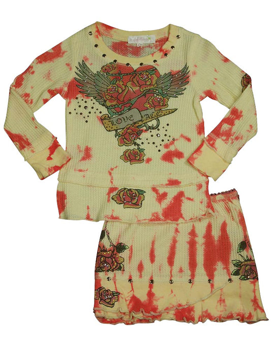 Baby Sara Toddler & Girls Tie Dye Waffle Weave Thermal Long Sleeve Skirt Set