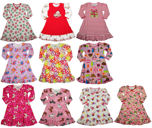 Sara's Prints Toddler Girls Long Sleeve Gown Multi Prints Ruffle Flame Resistant