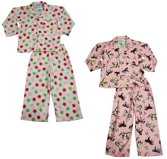 Sara's Prints Girls 2 Piece Long Sleeve Sleepwear Pajama Set - 100% Cotton