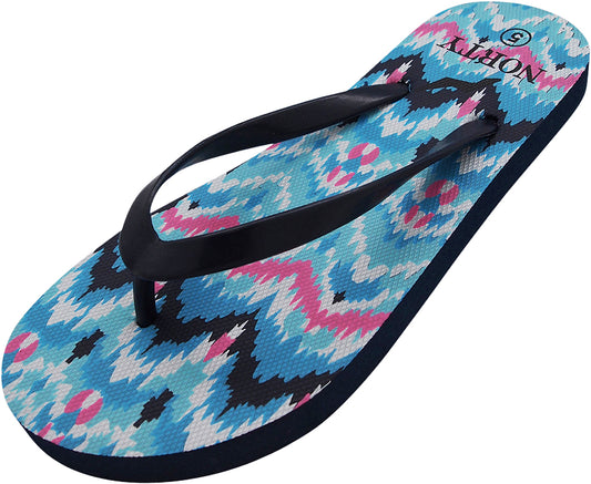 Norty Women's Graphic Print Flip Flop Thong Sandal for Beach, Pool or Everyday - Runs One Size Small