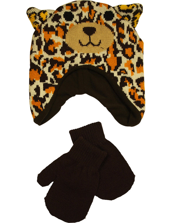 Winter Warm-Up - Infant Boys Hat and Mitten Set, Cocoa, Double Knit Hat, Dog Design, Ribbed Trim, Matching Mittens, Ribbed Cuff Wrists, 100% Acrylic, Made in Veitnam, #33791 33-791