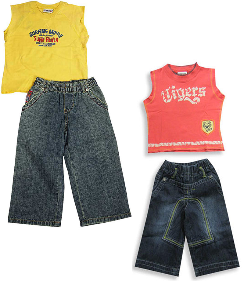 - GREAT STYLING: With 2 Styles to choose from, your child's unique individuality and style will come thru. Whether it be tops with screen prints on the front , pull on denim pants with elastic waistbands and pocket detailing, we have the styles that you want and need.