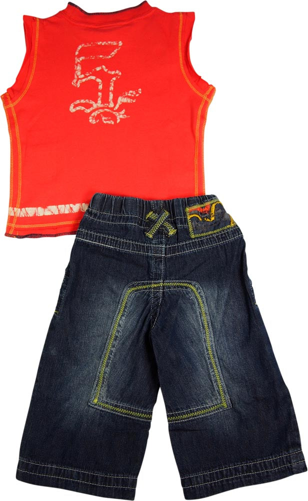 Mish Mish Baby Boys Infant Toddler Sleeveless Denim Jean 2 Piece Pant Sets, 17808