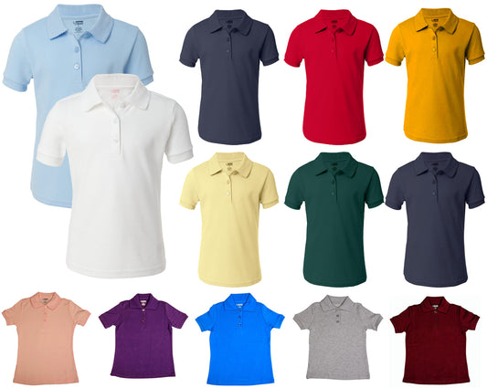 French Toast School Uniform Girls Short Sleeve Interlock Picot Polo Shirt