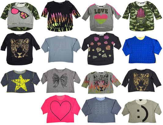 Flowers by Zoe Girls Long Sleeve Boxy Cut Off Fashion Scoop Neck Sweatshirt Top