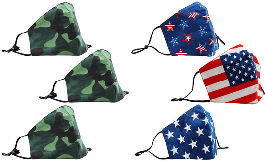 Norty 3 Pack USA Flag Cotton Face Covering Adult Washable Reusable 3 Layer Premium Face Mask Patriot Stars and Stripesatriot