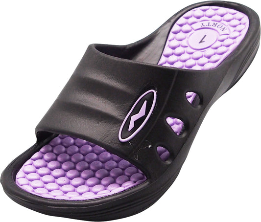 Norty Girl's Summer Comfort Casual Slide Flat Strap Shower Sandals Slip On Shoes Runs One Size Small