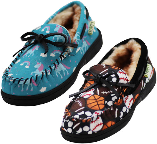 NORTY Little & Big Kid Boys Girls Fabric Printed Suede Trim Moccasin Slipper - Runs 2 Sizes Small
