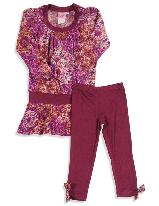 Lipstik Girls - Big Girls' Long Sleeve Retro Flower Pant Set