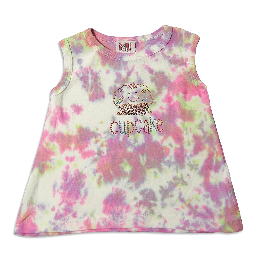 B-Nu by Purple Orchid - Infant Girls Sleeveless Tie Dye Top, Purple, Pink, Crewneck, Trapeze Style, Multi Colored Grommet Cupcake, 100% Cotton, #23145