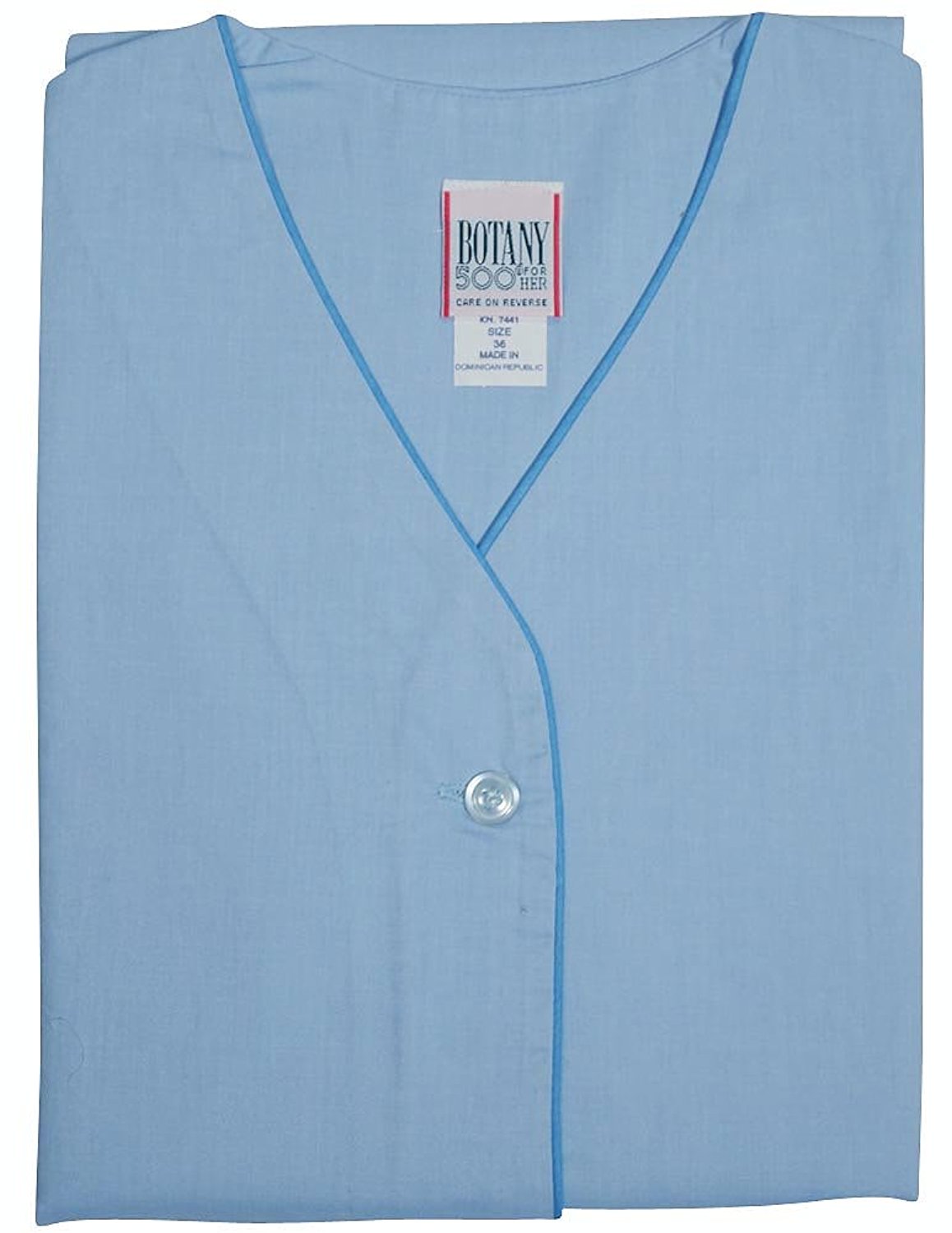 Botony 500 - Ladies Plus Short Sleeve Broadcloth Pajama, White, V-Neck Button Down Surplice Top, Full Elastic Waistband Pant with Snap Closure, 60% Cotton 40% Polyester, Made in Dominican Republic, #34245 34-245