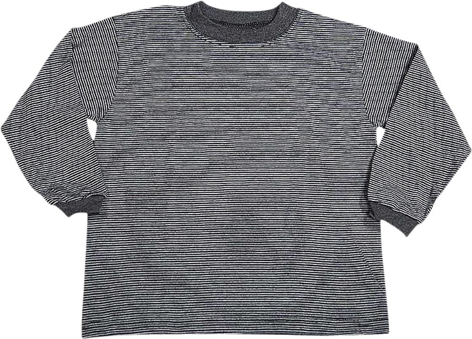 Caribe - Boys Long Sleeved Striped Tee, Charcoal, Black, White, 100% Cotton, Machine Wash Warm, Tumble Dry Low, #4981