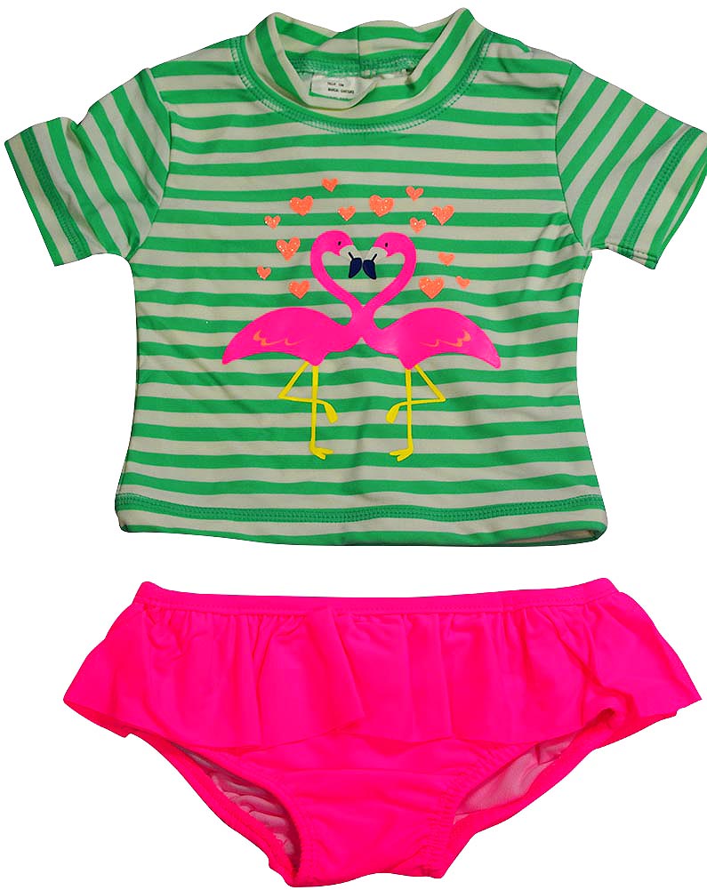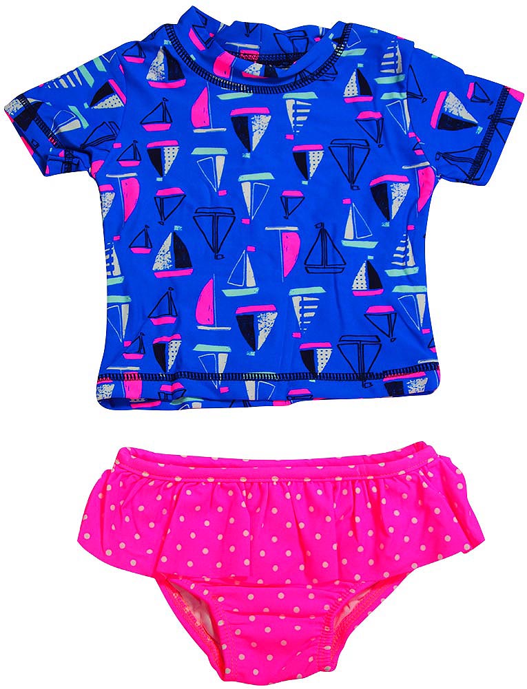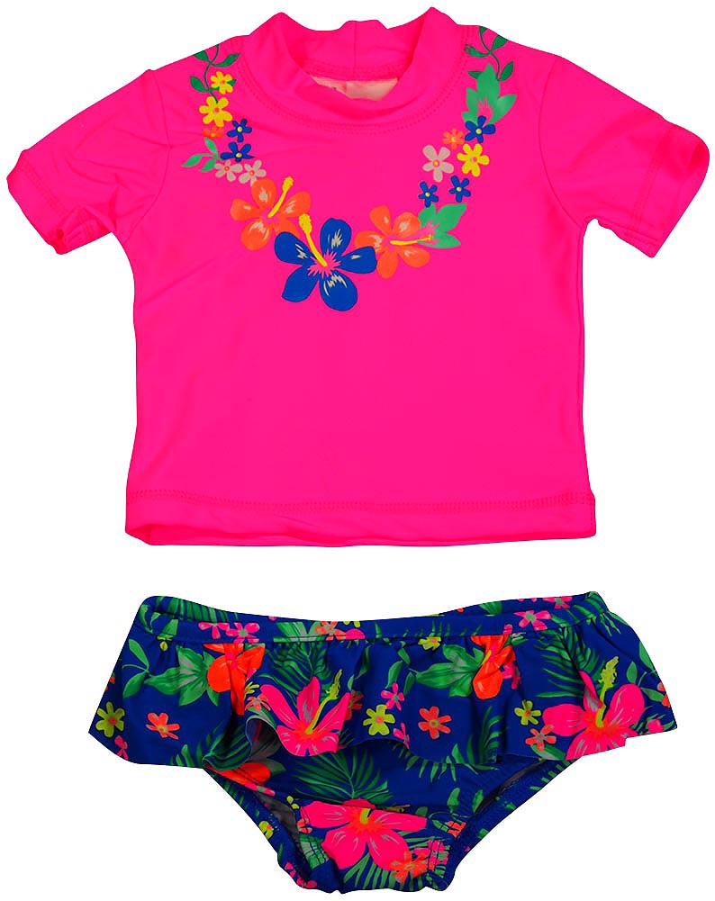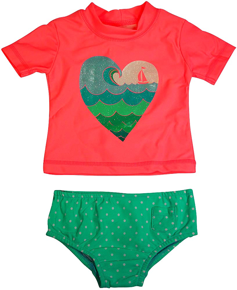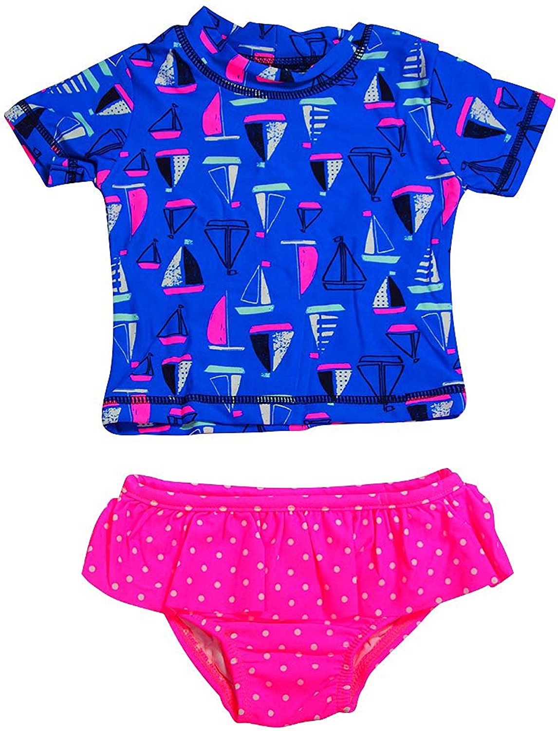 Carter's - Baby Girls 2PC Short Sleeve Rashguard Swim Set, Short Sleeve Top with Graphic, Front Lined, Bikini Bottom, Polyester/Elastine Lining 100% Polyester, Made in Bangladesh, #38840 38-840