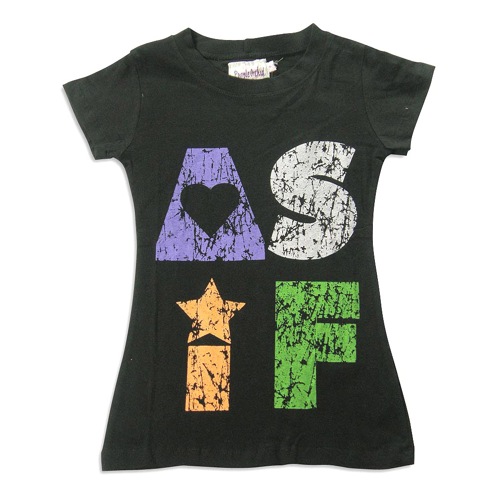 Celeb Kids by Purple Orchid - Girls Short Sleeve T-Shirt, Black, Ribbed Crewneck, Screen Printed AS IF, 100% Cotton, #23108