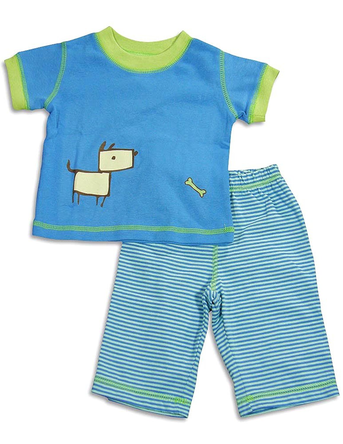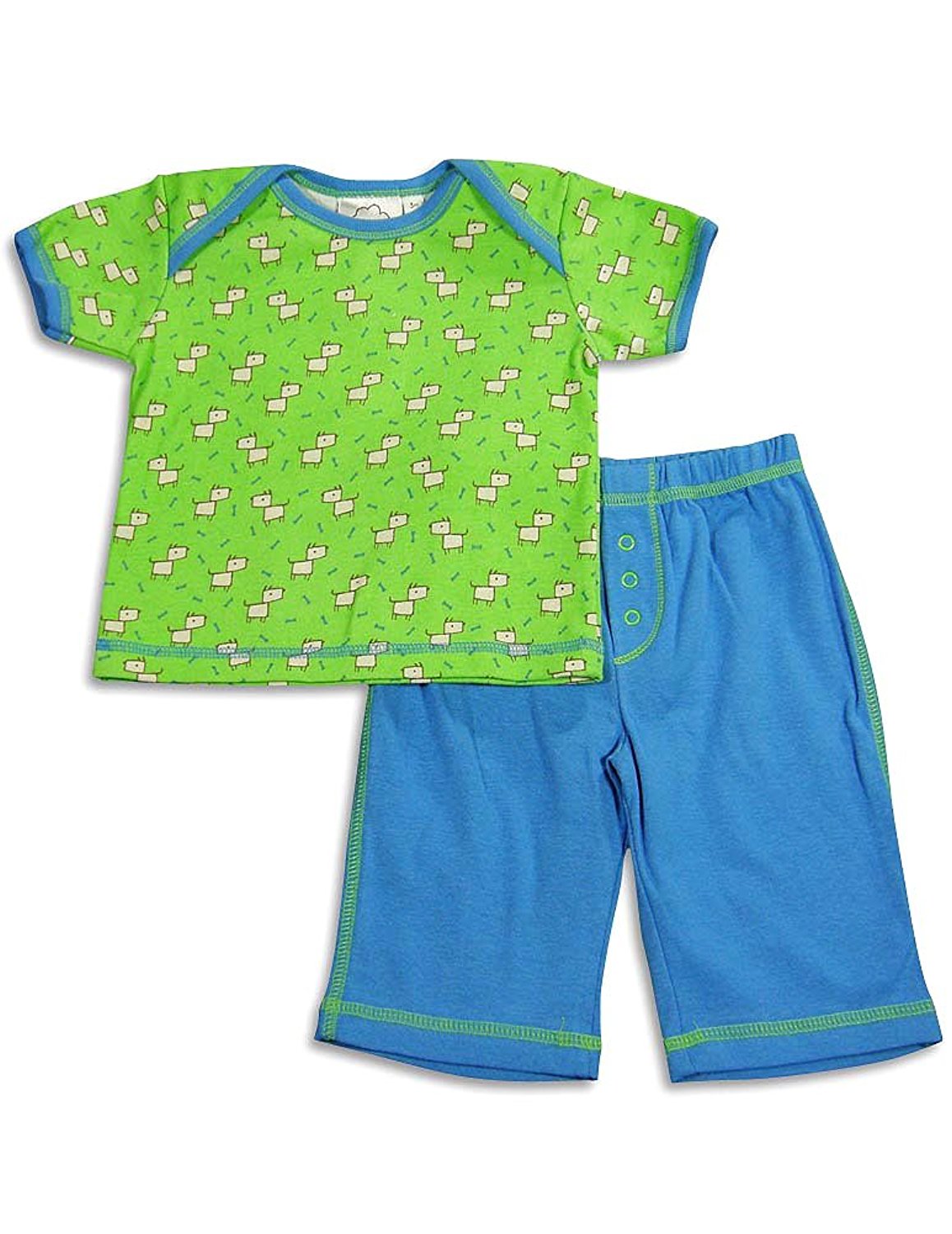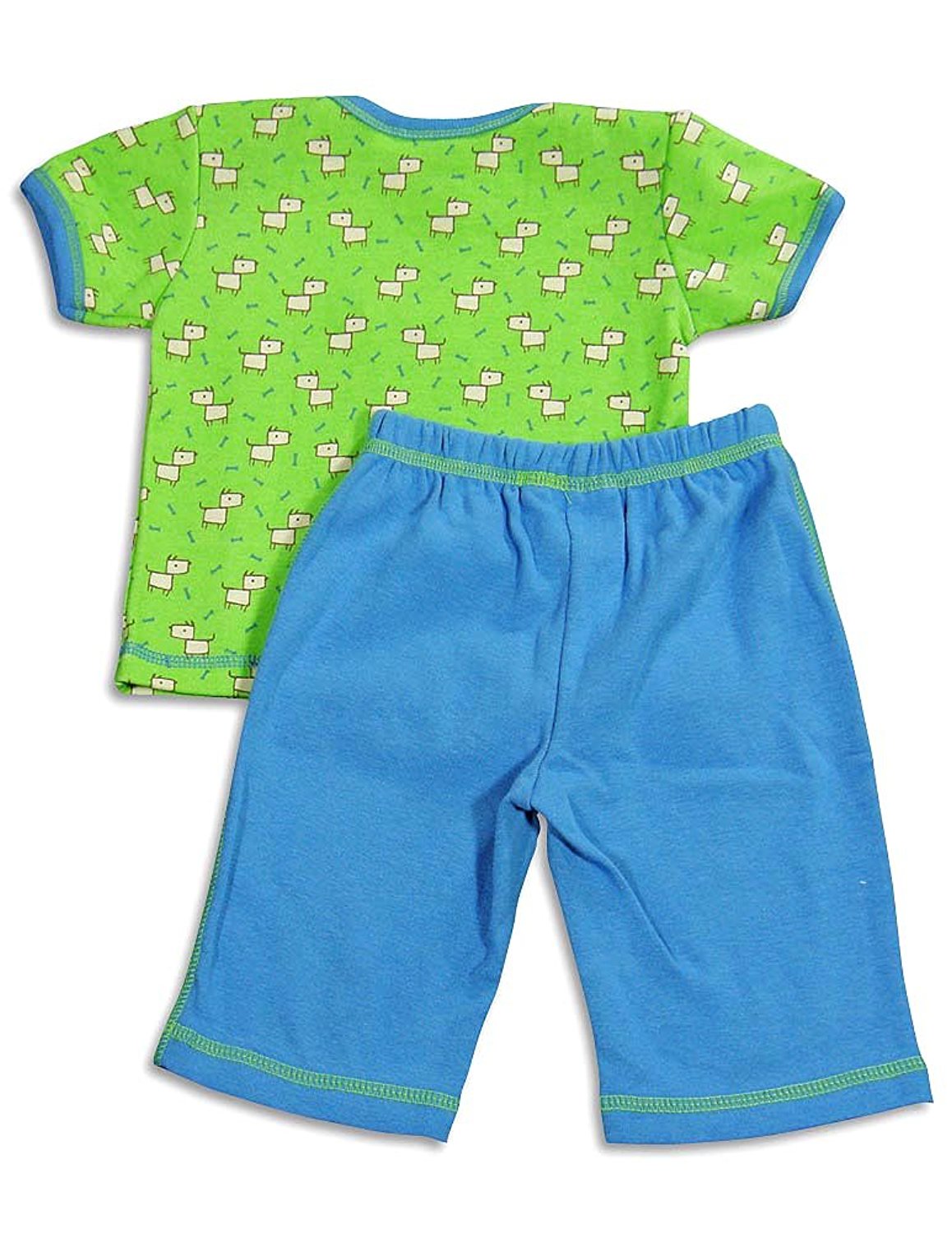 Cloud Mine - Newborn Boys Short Sleeve Dog Pant Set, Green, Blue, Laptop Shoulders, Ribbed Trim, Dog Print, Full Elastic Waistband Pant, Contrast Stitching, Faux Snap Fly, 100% Cotton, #24674