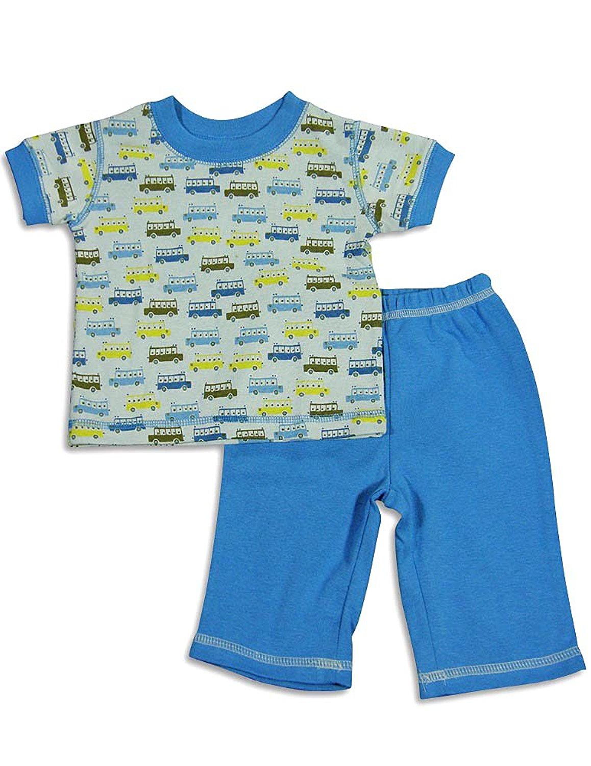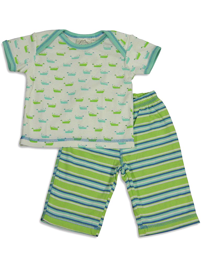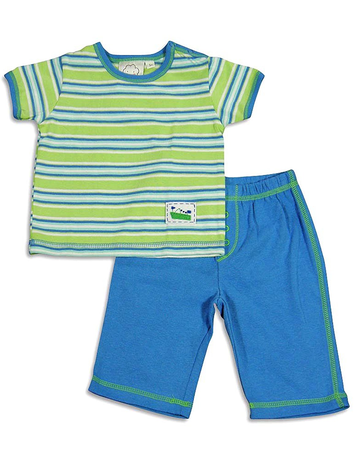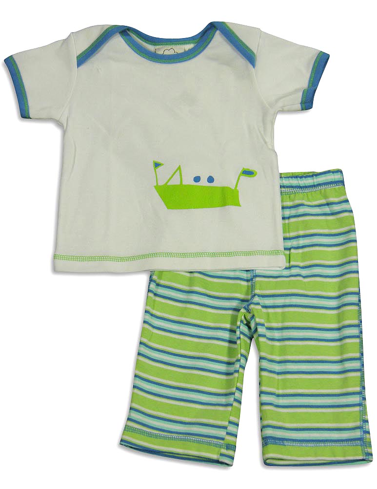 Cloud Mine - Newborn Boys Short Sleeve Dog Pant Set, Green, Blue, Laptop Shoulders, Ribbed Trim, Dog Print, Full Elastic Waistband Pant, Contrast Stitching, Faux Snap Fly, 100% Cotton, #24674