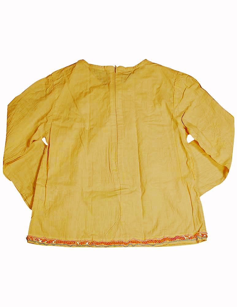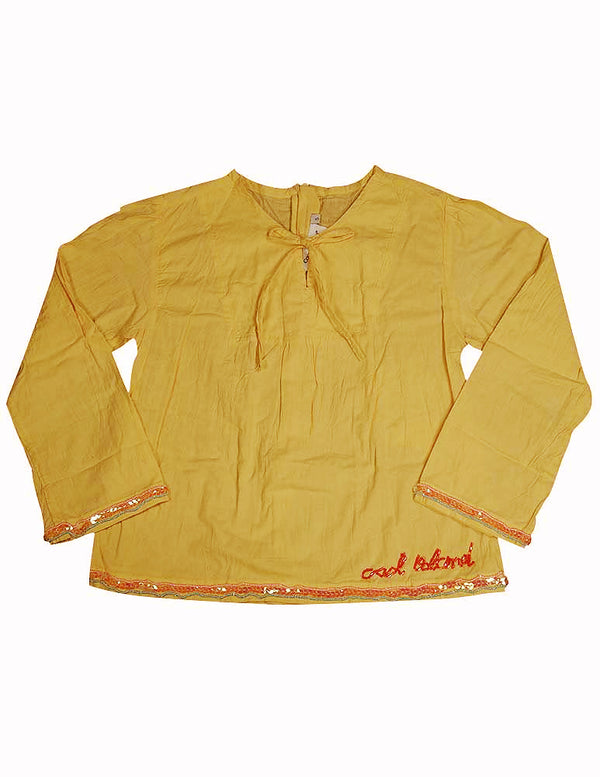 Cool Island - Girls Long Sleeved Top, Gold, 1/2 Zip up Back, Ties at Neck, Flare Sleeves, Bead and Sequin Detail at Waist and Wrists, Wrinkle Look, 100% Cotton, #9612