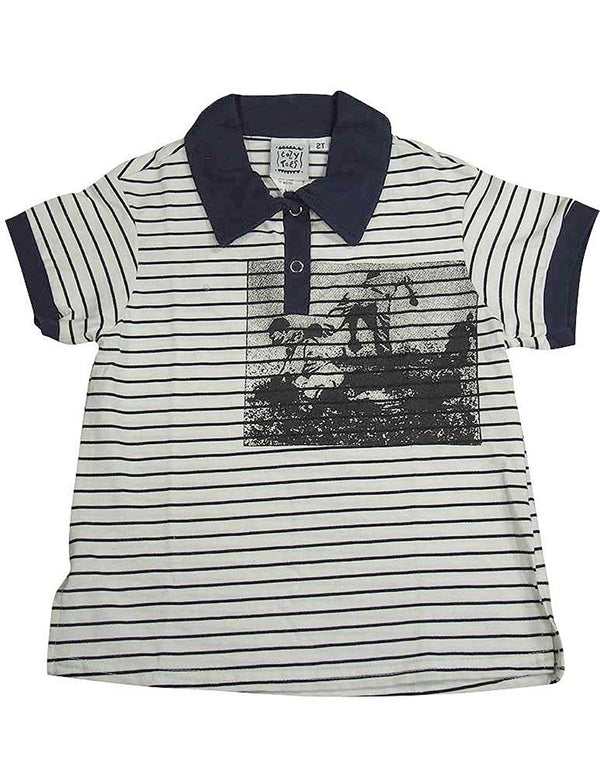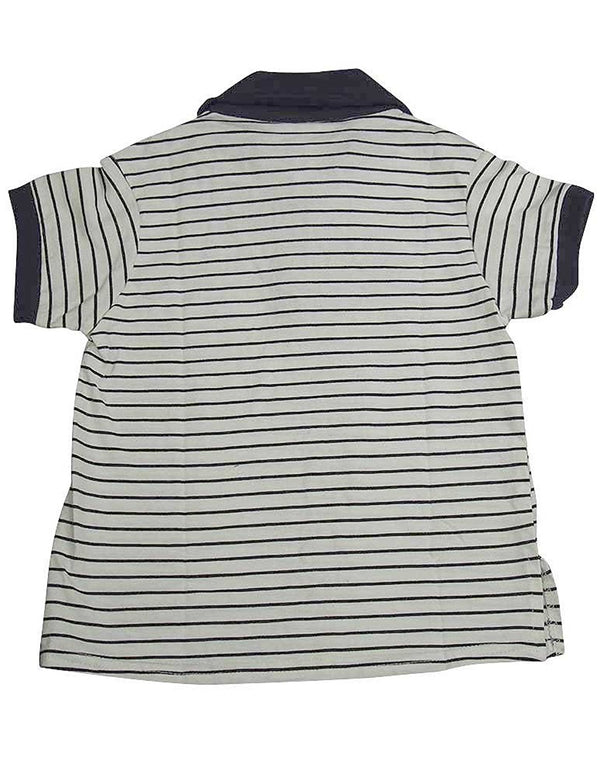 Cozy Toes - Toddler Boys Short Sleeved Polo, White, Black, 2 Snap Closure, Striped with Baseball Graphic, Side Slits, 100% Cotton, #10153