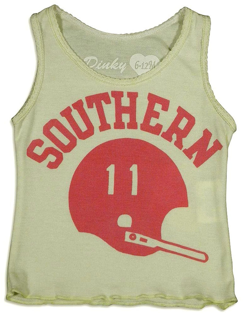 Dinky Souvenir - Infant Girls Football Helmet Tank Top, Vanilla, Decorative Trim, Lettuce Edge Hem, SOUTHERN With Football Helmet Graphic, 60% Cotton 40% Polyester, #25653