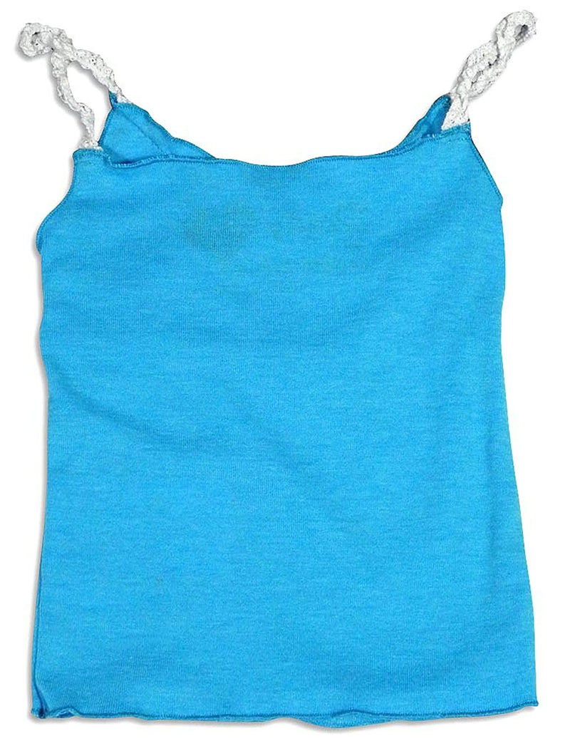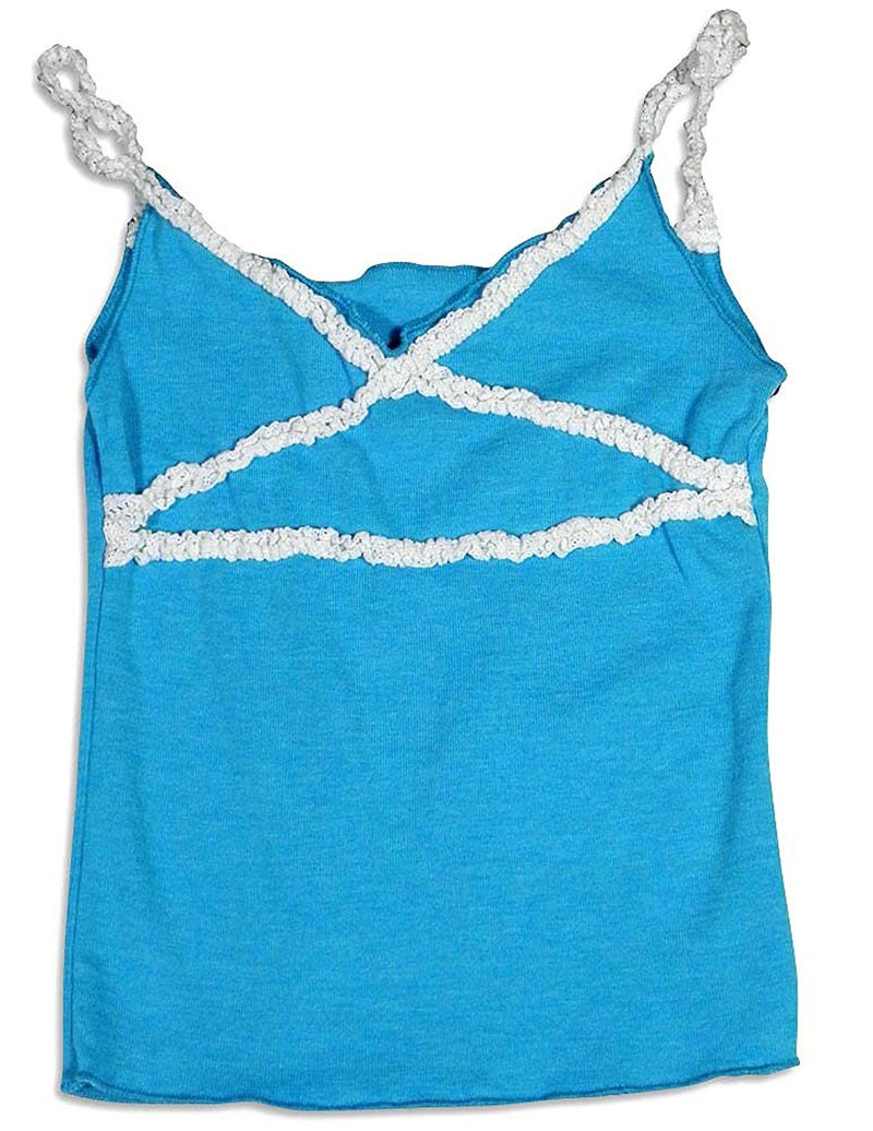 Dinky Souvenir - Infant Girls Tank Top, Blue, Elastic Lace Spaghetti Straps With Lace Trim Criss Cross On Front, Lettuce Edge Trim And Hem, 60% Cotton 40% Polyester, #25649