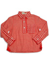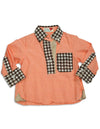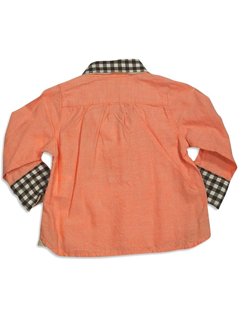 Dinky Souvenir - Girls Long Sleeve Top, Orange, Brown, Oxford Style Top With 3 Buttons, Plaid Trim, Pullover, 100% Cotton, Made In China, #31160 31-160