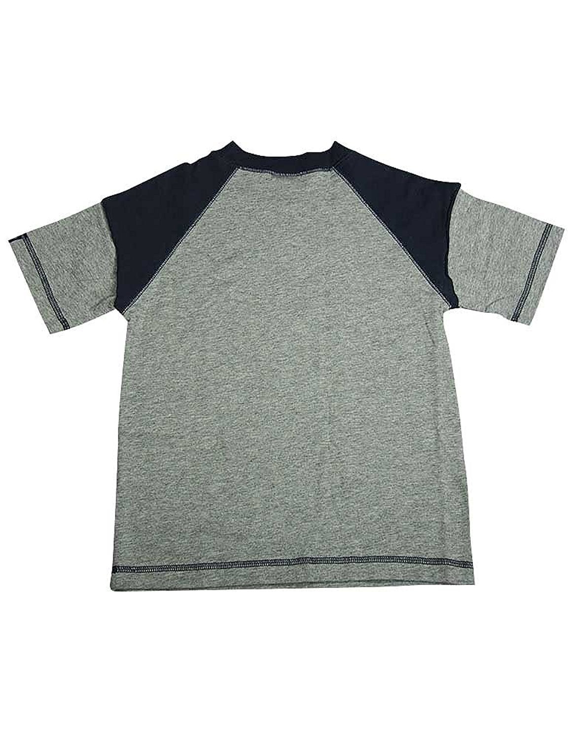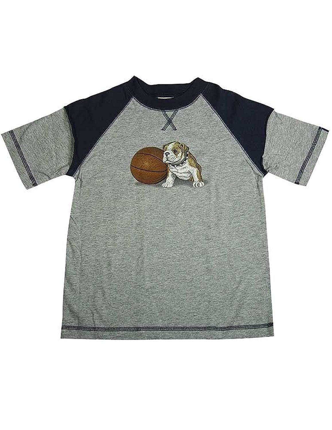 Dogwood - Boys Short Sleeve Tee Shirt, Grey, Navy, Layered Sleeve Look, Ribbed Neck, Bulldog and Basketball Print, Contrast Stitching, 100% Cotton, #11645