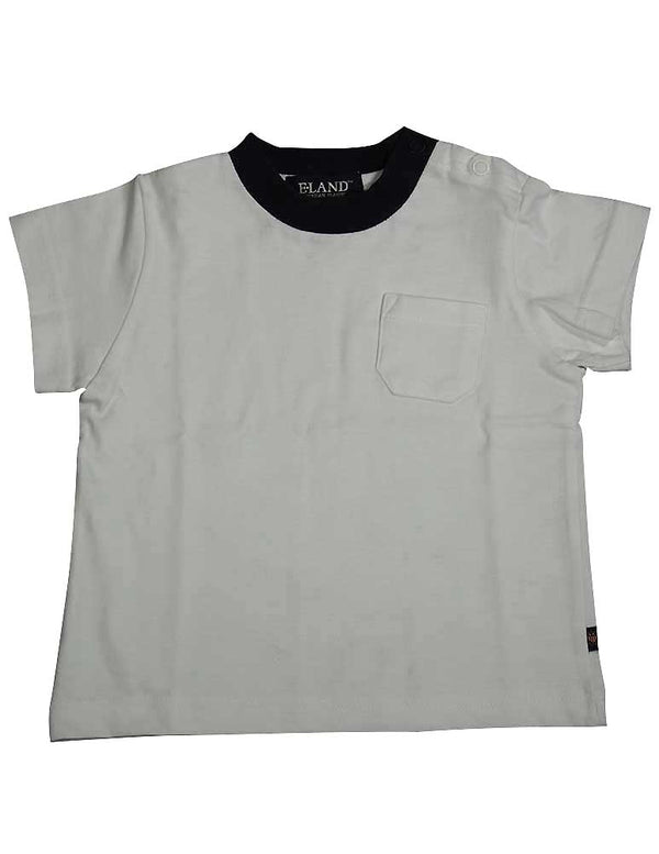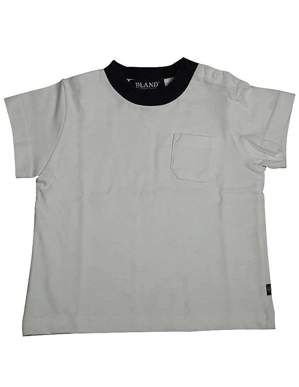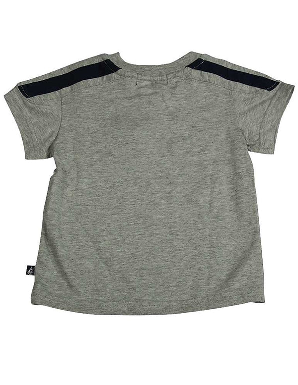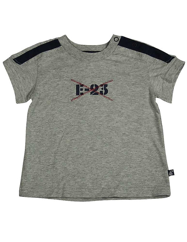 E-Land - Infant Boys Short Sleeve Tee, Grey, Sport Stripes On Shoulders, Snaps On Left Shoulder, Ribbed Neck, 100% Cotton, #12142