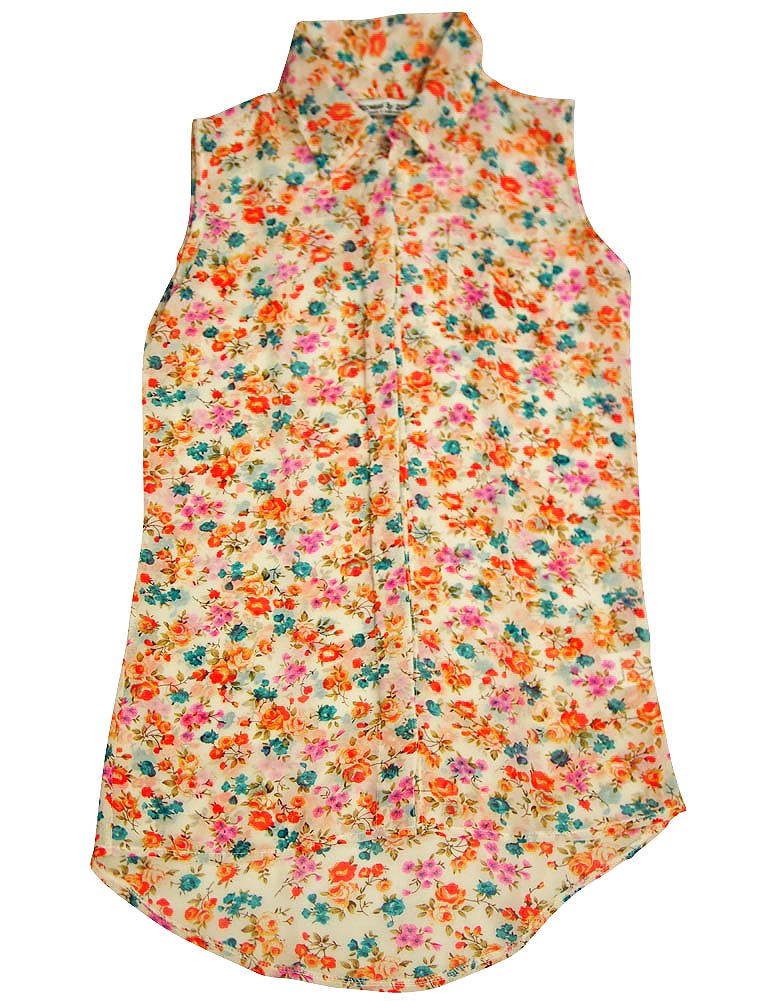Flowers by Zoe - Girls Sleeveless Floral Button Down Blouse, Black, Hidden Front Buttons, Breast Pocket, Hi Lo Hemline, Sheer Floral Print, 100% Polyester, Made in Indonesia, #33120