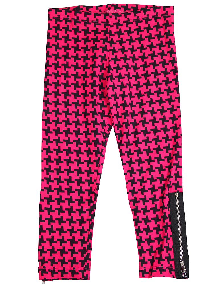 Flowers by Zoe - Girls Houndstooth Legging, Black, Fuchsia, Full Elastic Waistband, Houndstooth Print, Zipper at Ankles, 85% Rayon 15% Spandex, Made in Indonesia, #35782 35-782