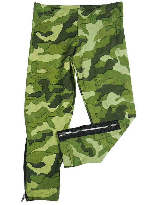 Flowers by Zoe - Girls Leggings, Stretch Fabric, Camouflaged, Flower Prints or Zipper detailing, 85% Rayon 15% Spandex, #26520