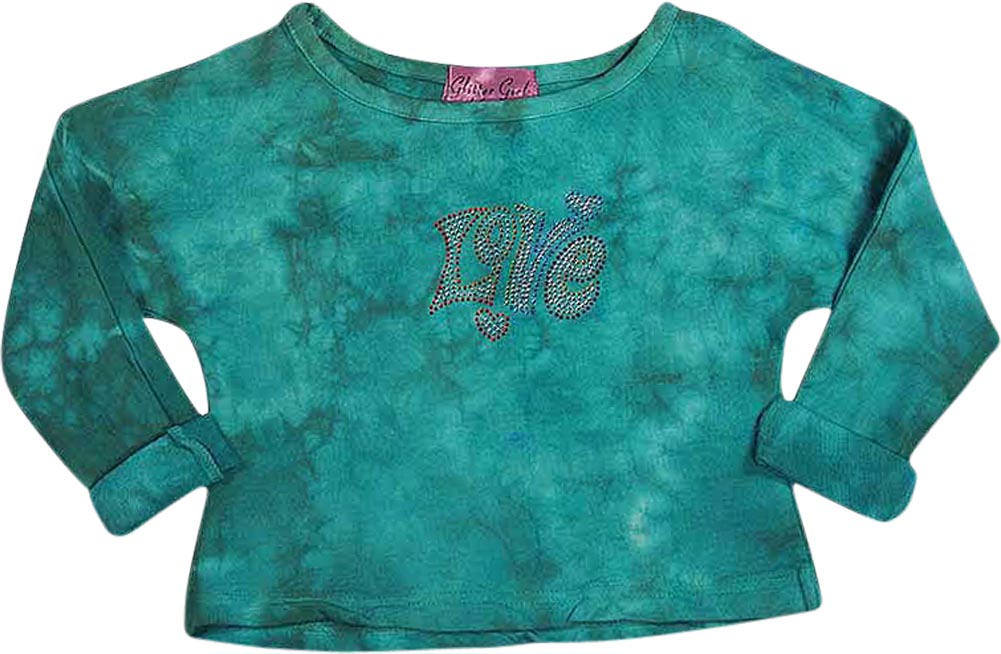 Glitter Girl - Little Girls Long Sleeve Cropped Tie Dye Sweatshirt, Pink, Drop Shoulder, Crewneck, Foldover Cuff Wrists, Studded Butterfly, 100% Cotton, Made in China, #37658 37-658