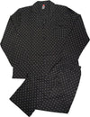- The long sleeve button down top features 4 buttons and a chest pocket. The long pants have a 2 button elastic covered waistband. A center back seam is also featured for a perfect, clean fit.