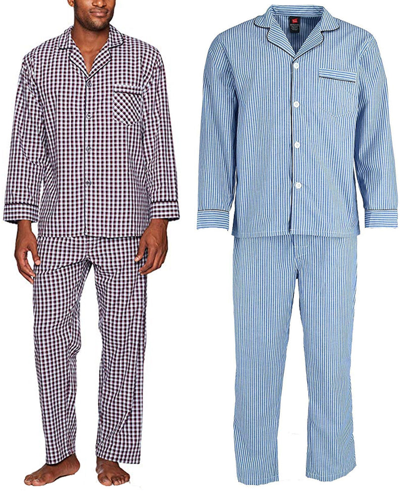 Hanes Men's and Big Men's Long Sleeve Classic Woven Broadcloth Pajama Set