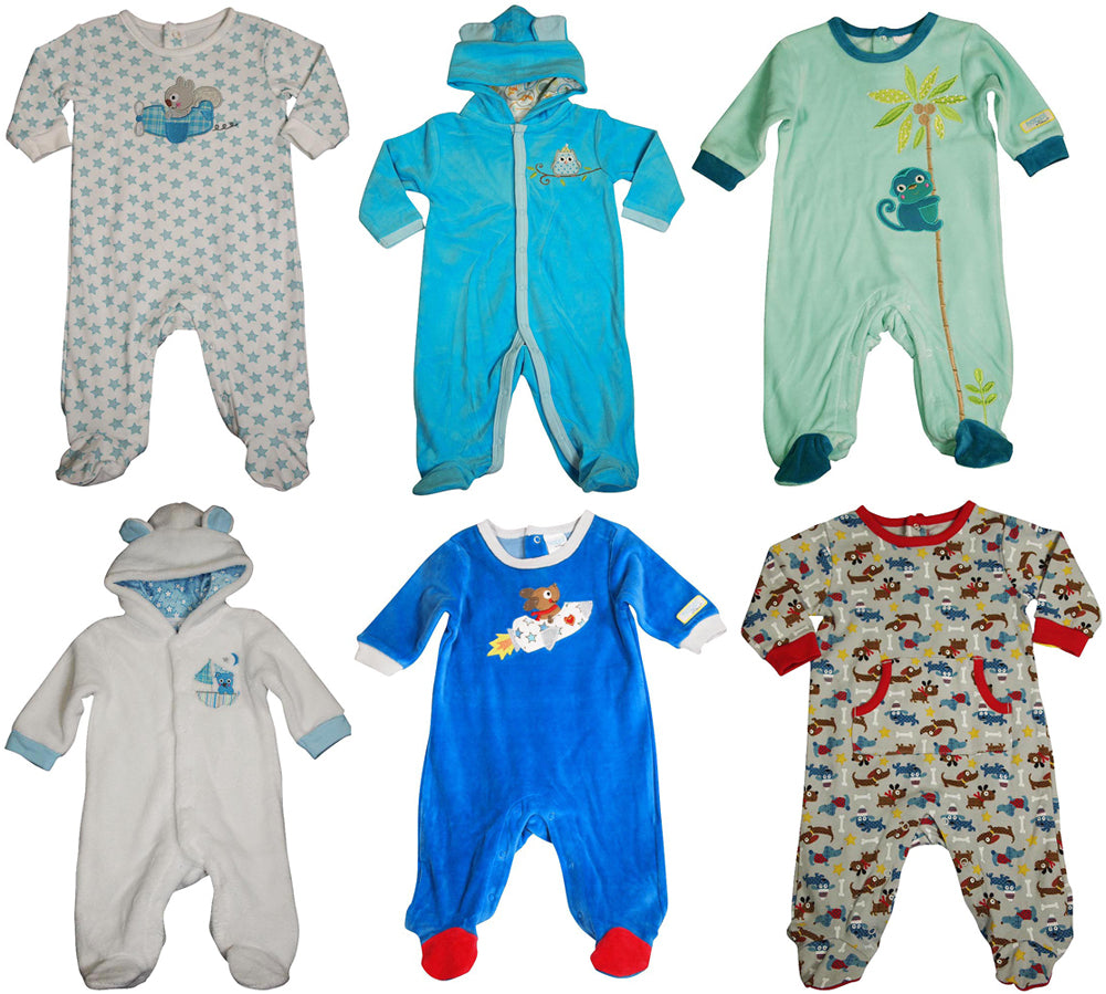 - PLAYFUL PRINTS AND COMFORTABLE FABRICS - Grey dogs (100% cotton), Royal blue velour (75% cotton 25% polyester), Turquoise velour (75% cotton 25% polyester), White stars (100% cotton), Water blue velour with hood (75% cotton 25% polyester) and White plush microfiber (100% polyester)