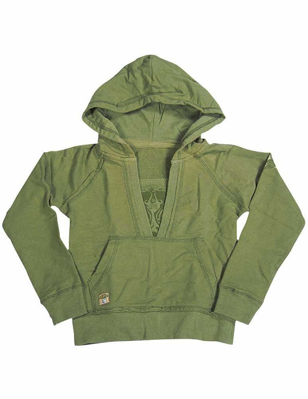 Jade - Girls Hooded Ribbed Sweatshirt, Olive, Low V-Neck, Patch Pocket, Ribbed Waist and Cuffs, 95% Cotton, 5% Spandex, #7817