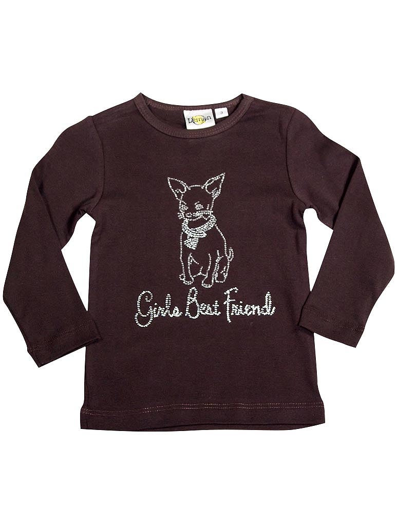 Lemon - Little Girls Long Sleeve Top, Brown, Crewneck, Rhinestone Studded Chihuahua with Girls Best Friend, 100% Cotton, Made in USA, #35949 35-949