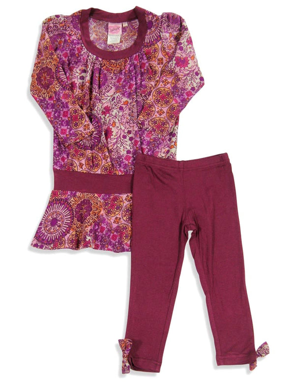Lipstik Girls - Girls Long Sleeve Retro Flower Pant Set, Purple, Multi, Knit Neck And Drop Waist, Loose Upper Bodice, Full Elastic Waistband Pant, Bows On Side Of Ankle Hem, Top 95% Polyester 5% Spandex Pant 95% Rayon 5% Spandex, #23979