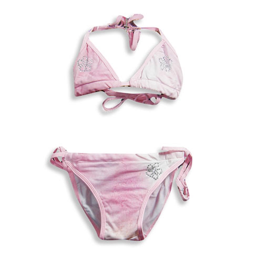 Lipstik - Toddler Girls 2 Piece Bikini Bathing Suit, Pink, Triangle Style Top, Tie Behind Neck And In Back, Bikini Bottom With Tie On Sides, Jeweled Flowers, Crackle Tie Dye Background, 82% Polyamid 18% Spandex, #15700