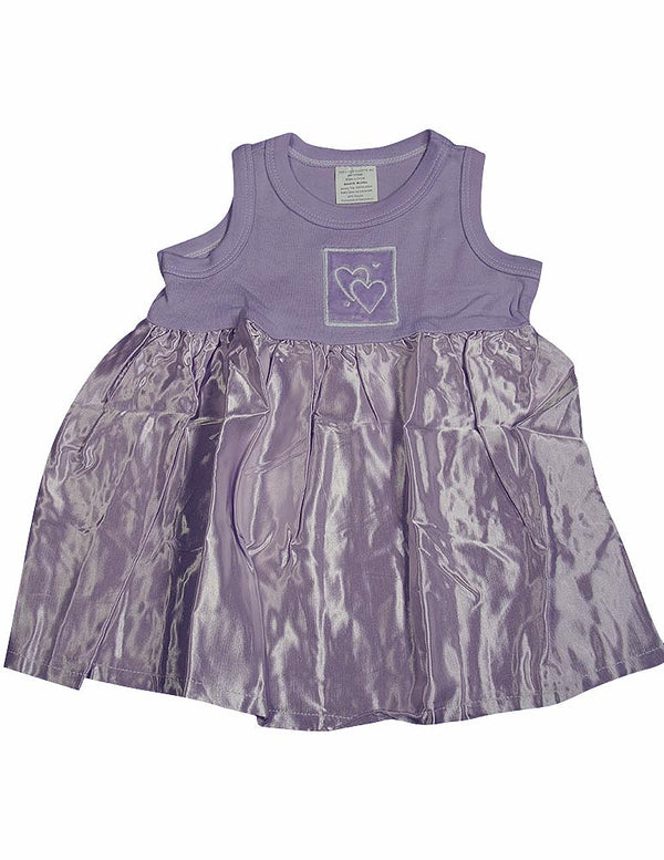 Little Giraffe - Newborn Baby Girls, Sleeveless Dress, Lilac with Hearts Embroidered Velvet Patch, and Satin Skirt, Jersey Top 100% Cotton, Satin Skirt 52% Acetate, 48% Rayon, Made In China, #4050