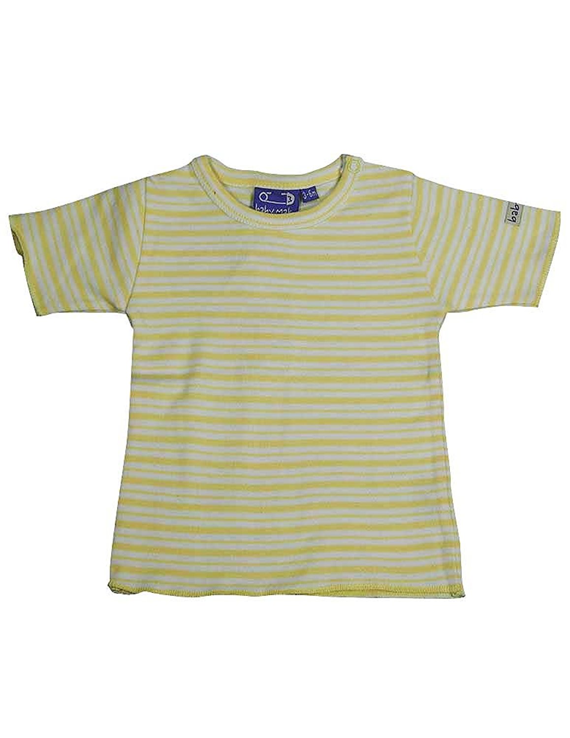 Mak the Yak - Newborn Boys Striped Short Sleeve Top, Yellow, White, Shoulder Snaps, 100% Cotton, #13309