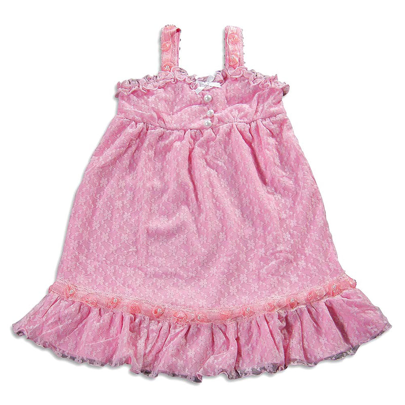 Me Me Me by Lipstik - Girls Sleeveless Dress, Pink, 1" Shoulder Straps, Lacey Mesh Overlay, Faux Pearl Buttons, Ribbon And Pearl Embellishment, Lined, 100% Polyester, Made In China, #21537