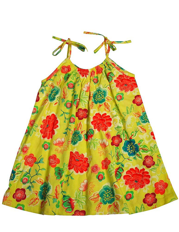 Mish - Girls Sundress, Yellow, Elastic Neckline, Adjustable Shoulder Ties, Floral Print, 100% Cotton, Made in India, #33528 33-528