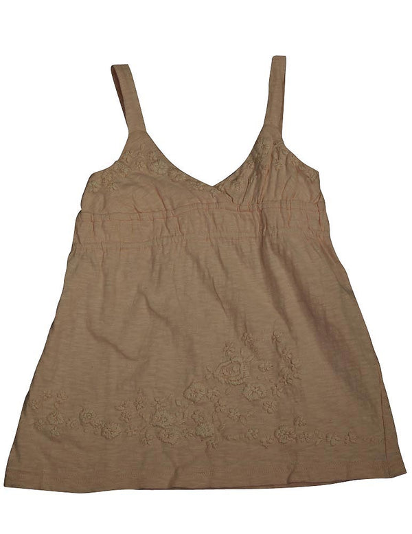 Mish - Girls Tank Top, Peach, Baby Doll Style, Thin Straps, Elastic Around Chest, Embroidered Detail, 100% Cotton, Made in India, #33543 33-543