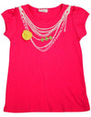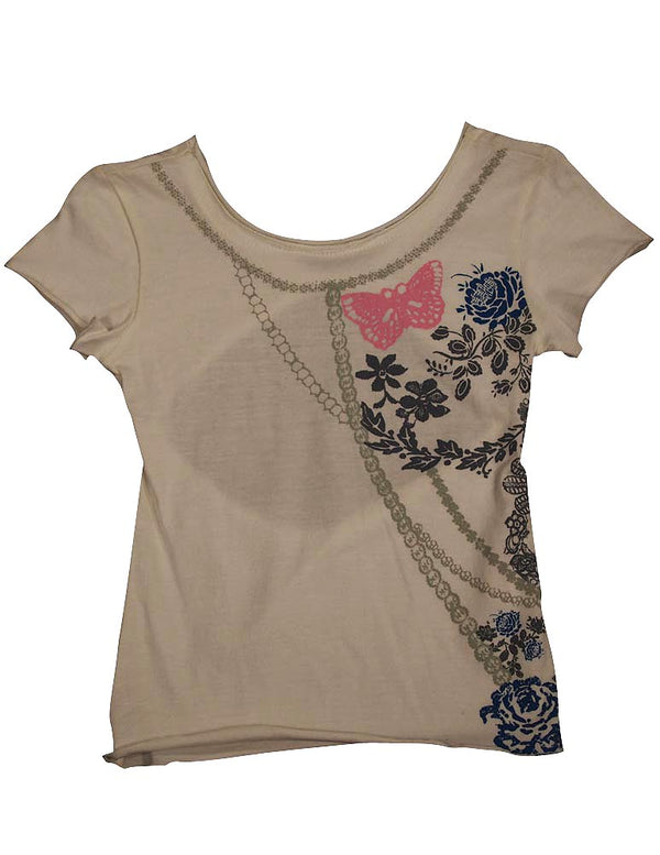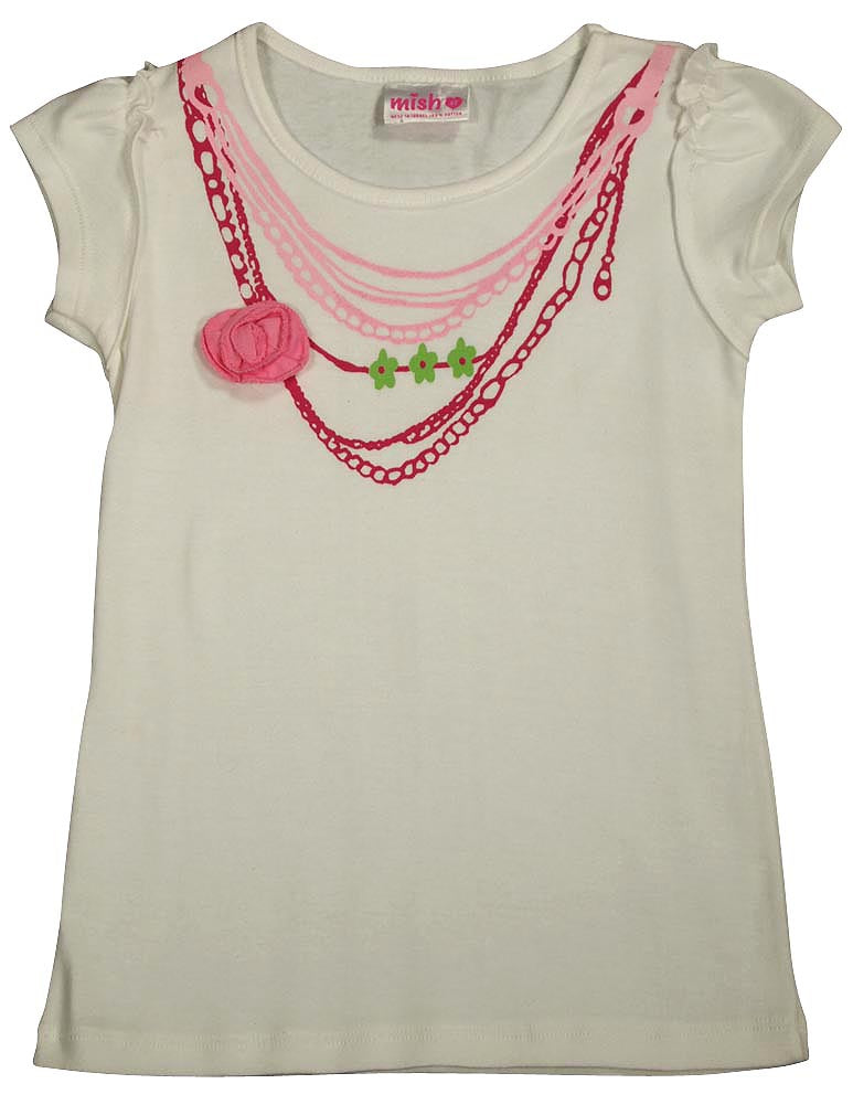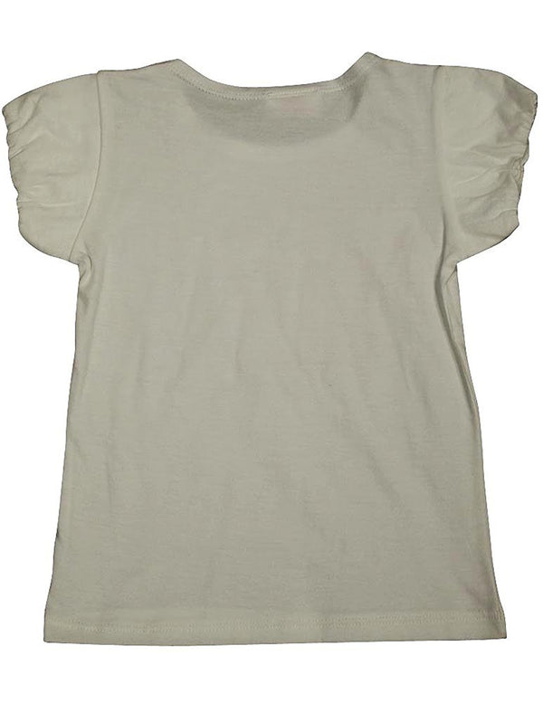 Mish - Girls Short Sleeve Top, White, Scoop Neck, Gathered Elastic Sleevebands, Flower Graphic, 100% Cotton, Made in Israel, #33539 33-539