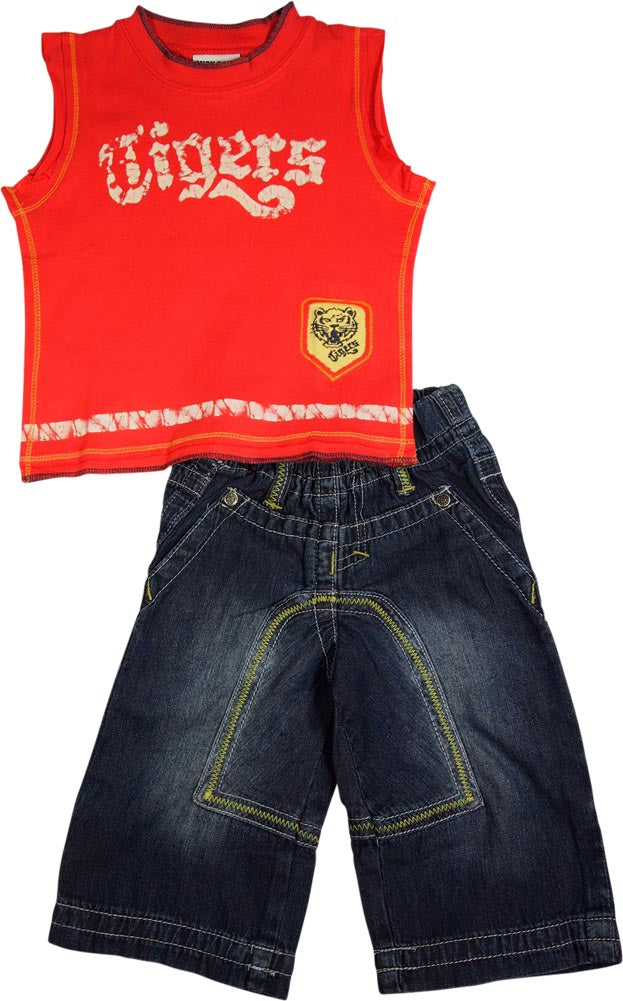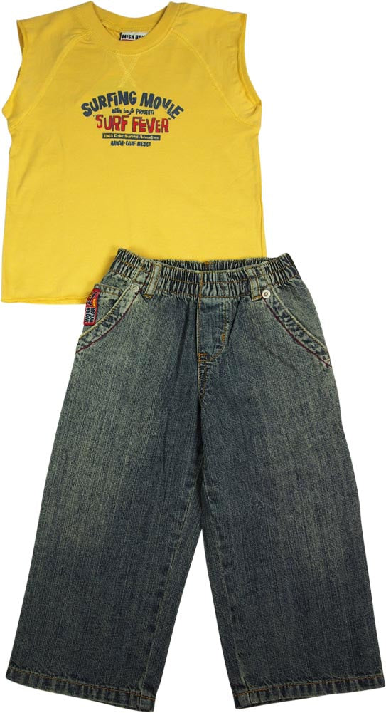 Mish Mish Baby Boys Infant Toddler Sleeveless Denim Jean 2 Piece Pant Sets, 17808